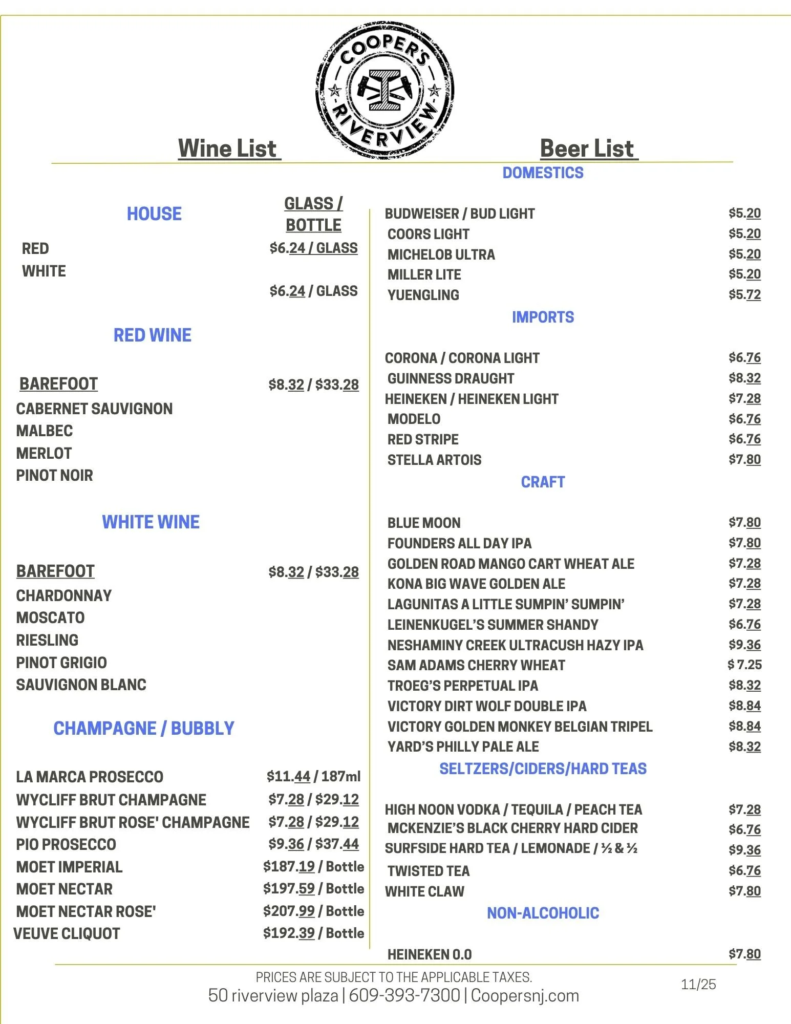 FOOD & DRINK MENUS